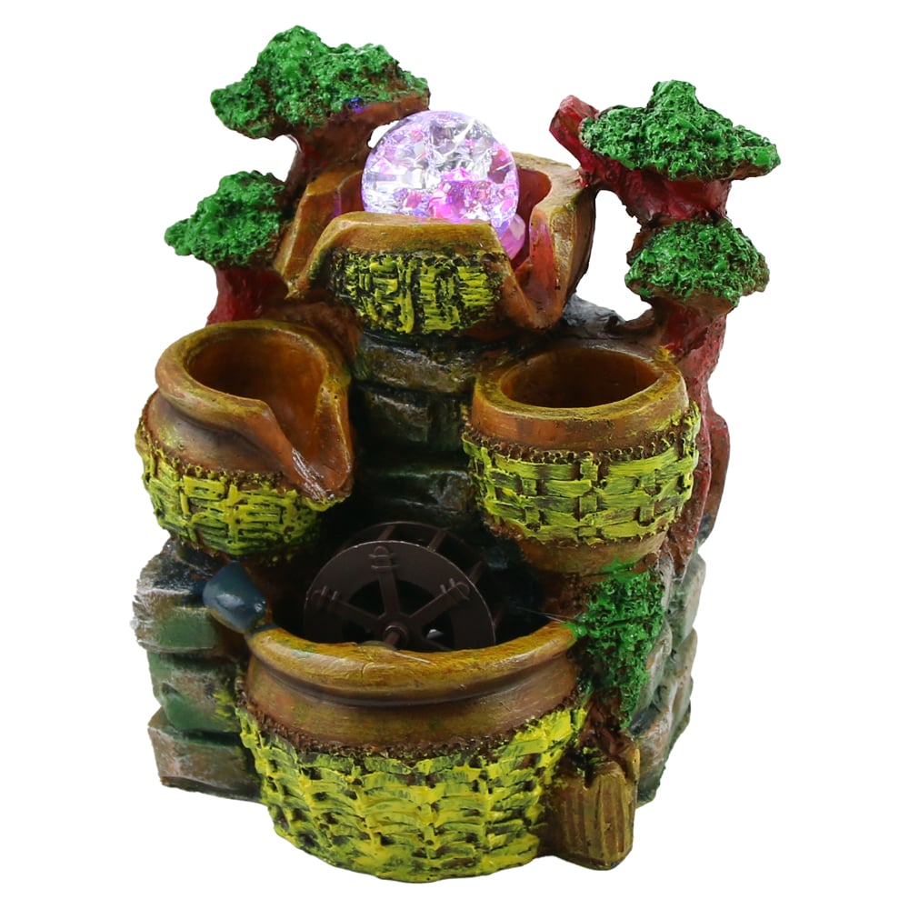 Fantana arteziana electrica cu sfera de sticla si LED-uri, 16×18 cm, cu roata de apa