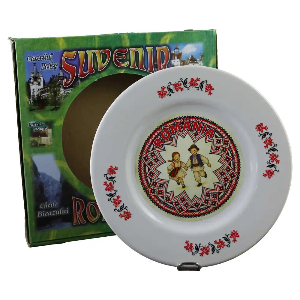 Farfurie decorativa din ceramica „Romania” 20 CM, Copii in port popular