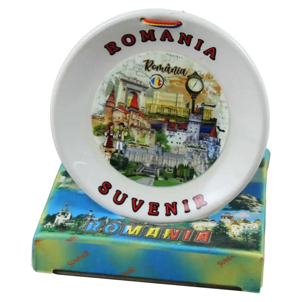 Farfurie decorativa „Romania”, 10 CM, Cladiri faimoase