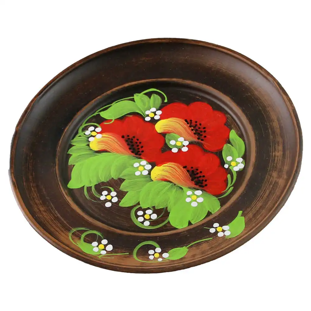 Farfurie din lut, pictata cu motive florale, 22 cm