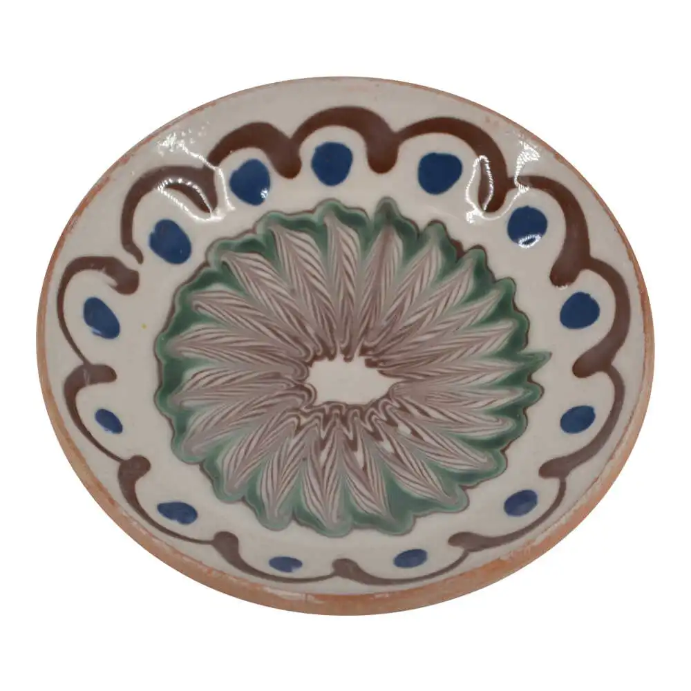Aceasta farfurie realizata din ceramica si pictata manual cu anumite motive. poate fi folosita pentru a servi mancaruri gustoase pentru familie. avand totodata si un rol decorativ pentru cei care apreciaza arta traditionala.