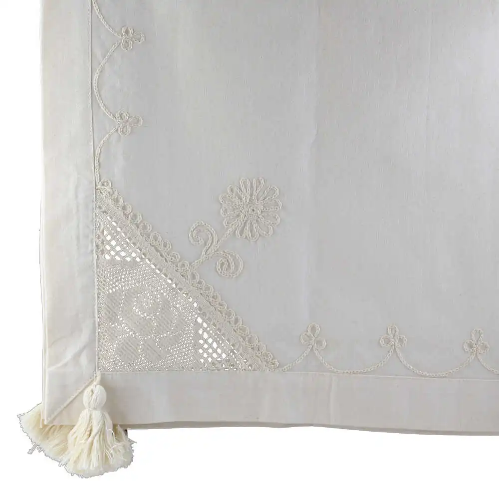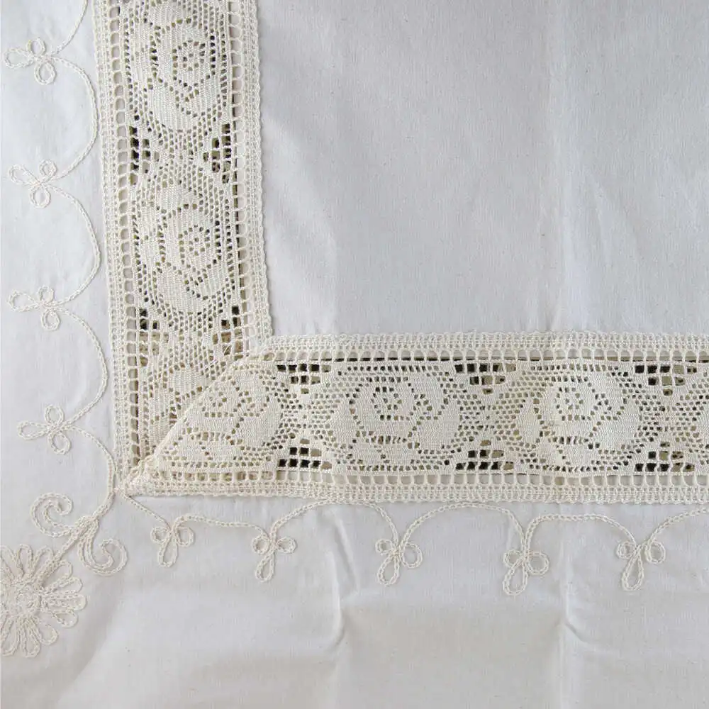Fata de masa rustica din bumbac 140 x 180 cm, cu dantela trandafiri si broderie