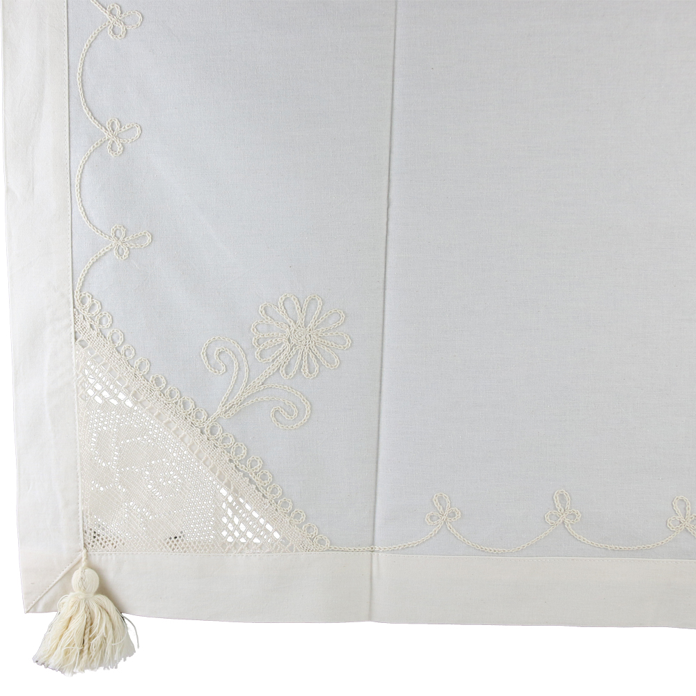 Fata de masa rustica din bumbac 90 x 90 cm, cu dantela si franjuri