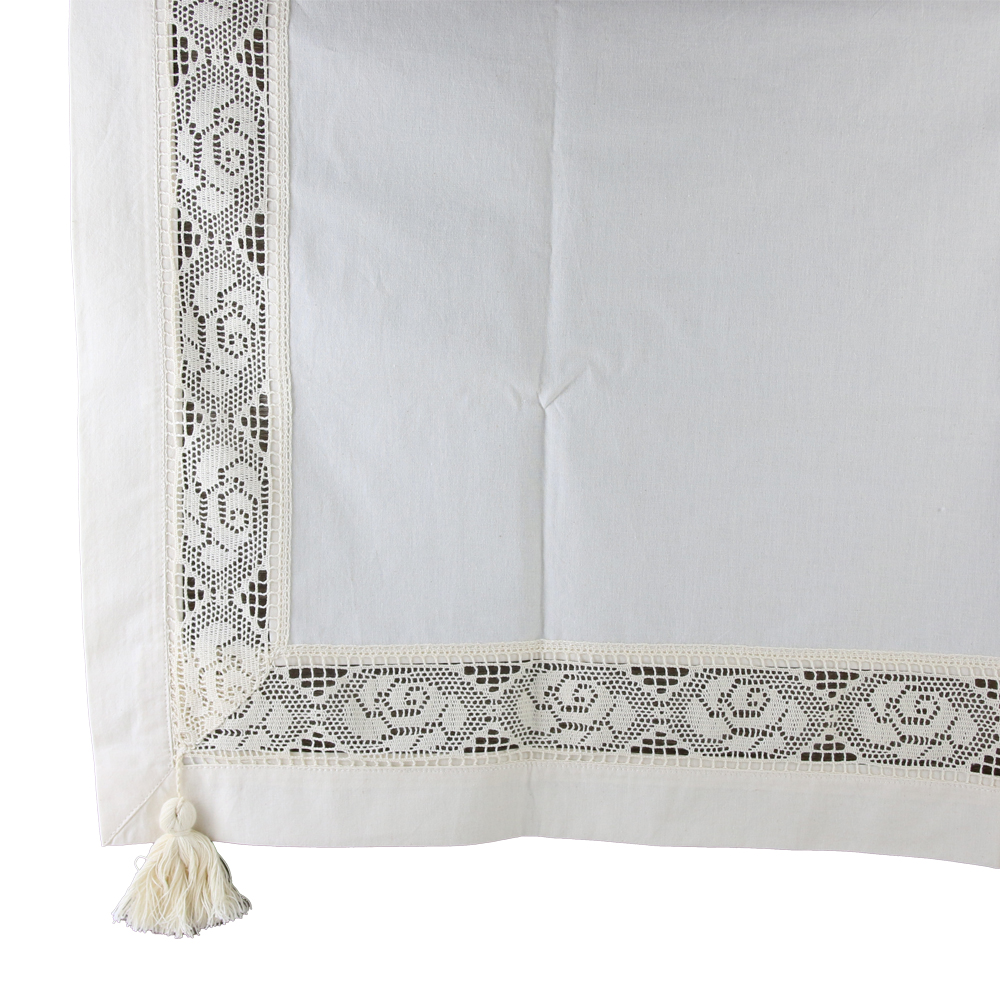 Fata de masa rustica din bumbac 90 x 90 cm, cu dantela trandafir si franjuri
