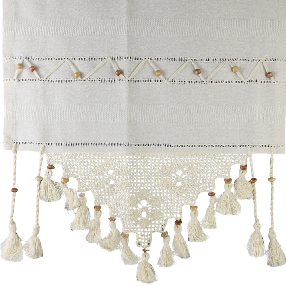 Fata de masa tip runner din bumbac 50 x 180 CM, cu dantela si margele din lemn