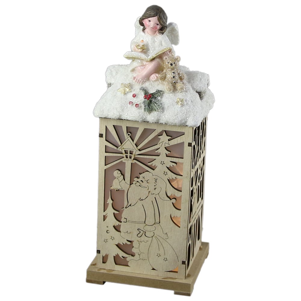 Felinar din lemn cu led si Ingeras 15×35 CM