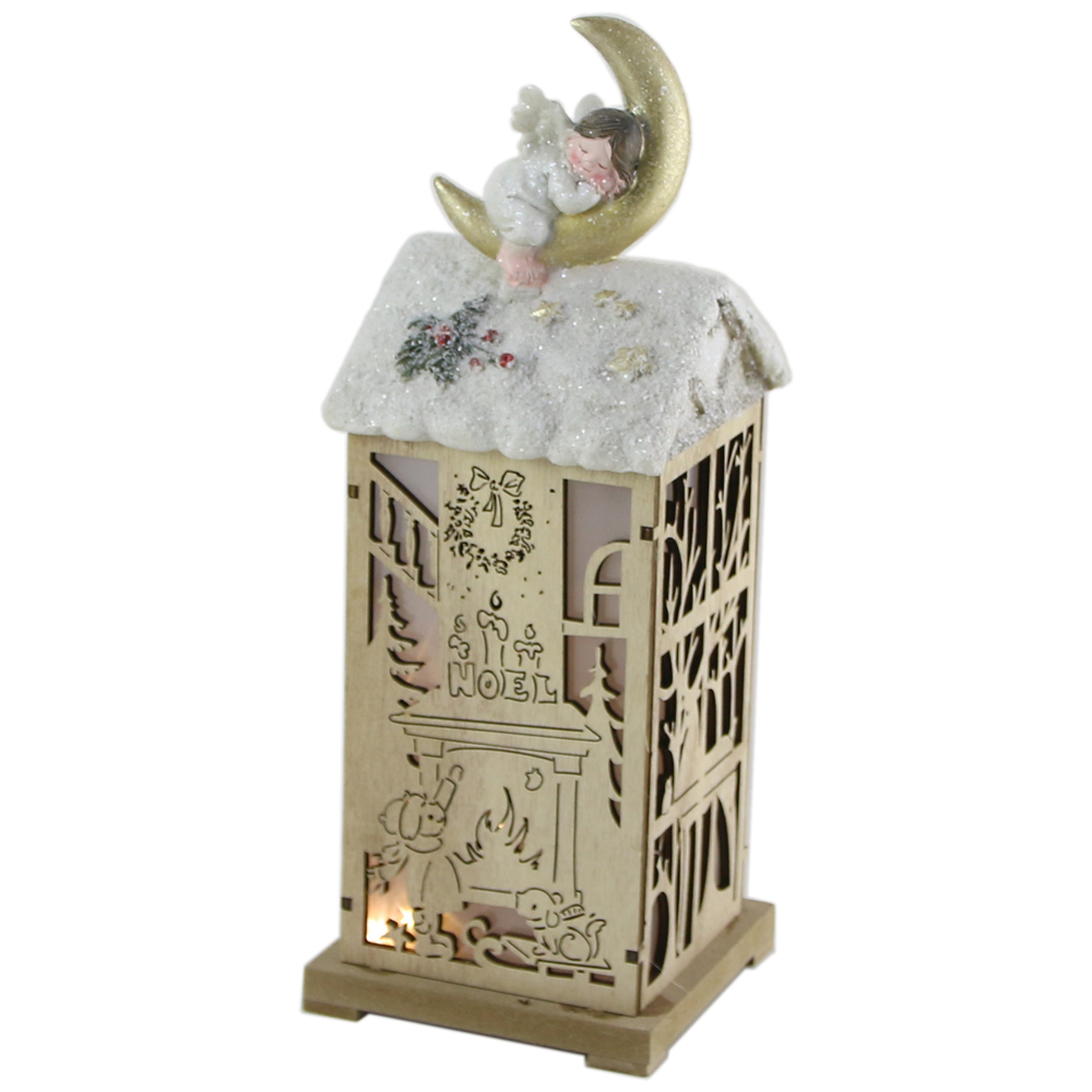 Felinar din lemn cu led si Ingeras pe Luna 13×32 CM