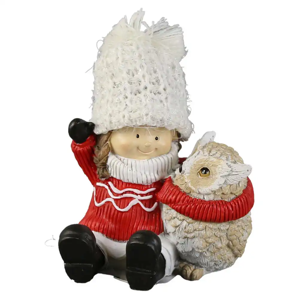 Figurina Copil din rasina, cu animal, 10 CM, rosu
