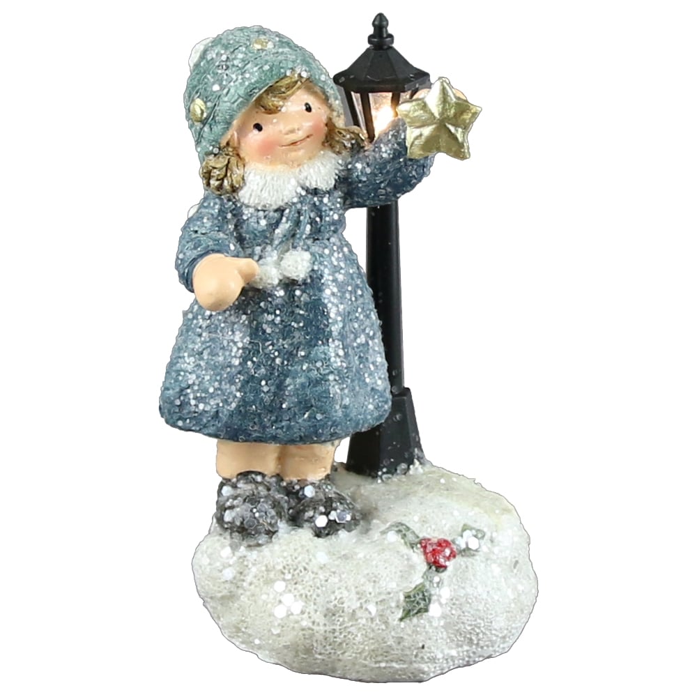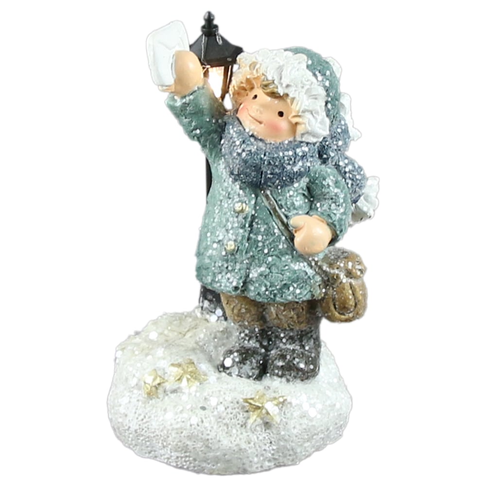 Figurina Copil din rasina cu felinar stradal, led 12 CM