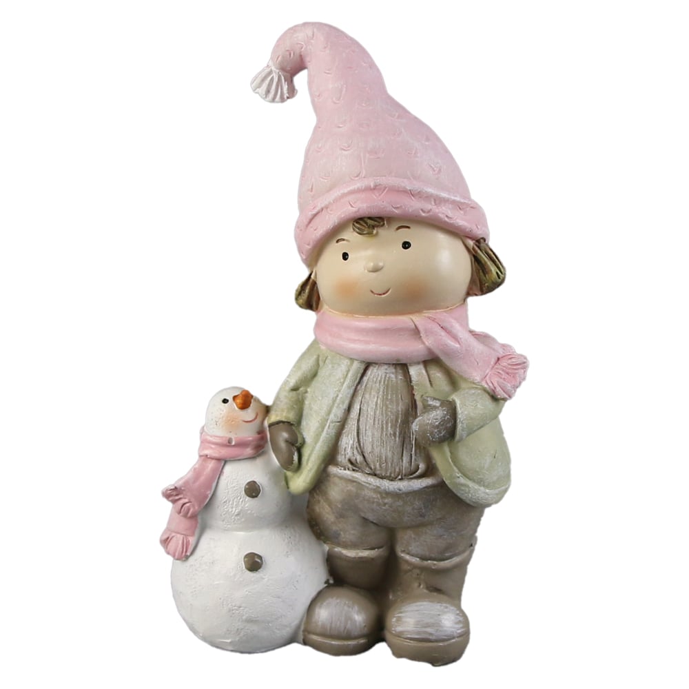 Figurina Copil din rasina, cu om de zapada 15 CM, Fata/Baiat