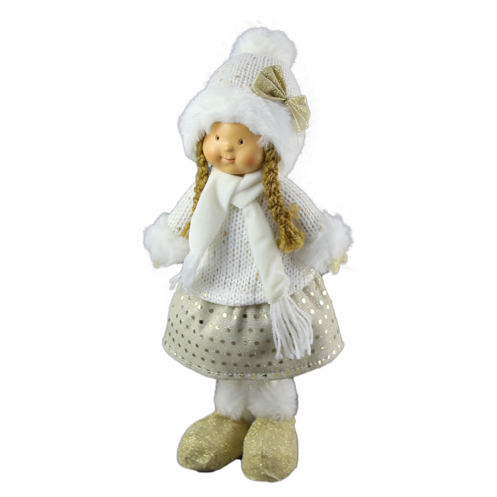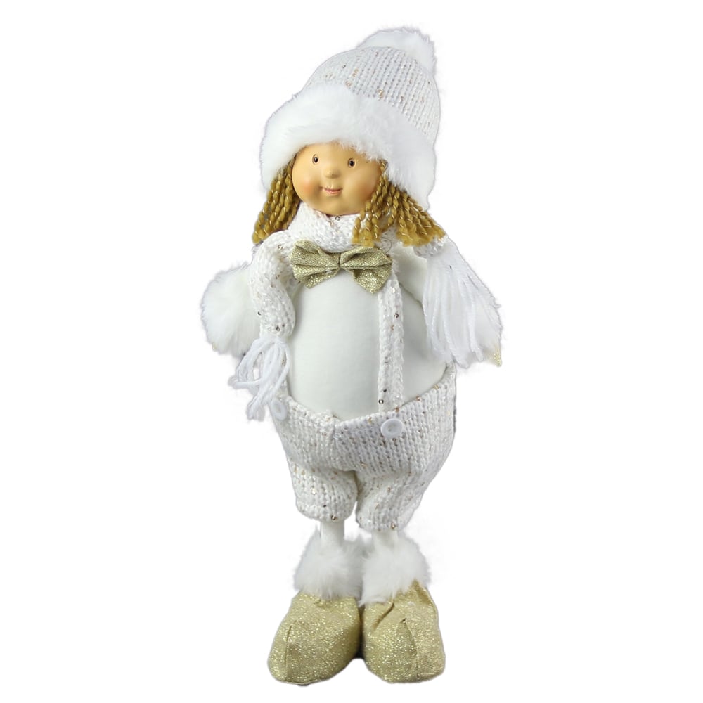 Figurina Copil din textil 38 CM, Alb cu auriu
