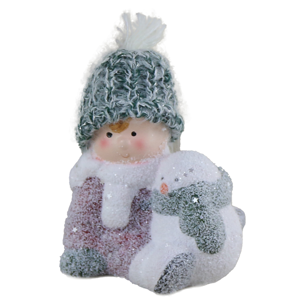 Figurina Craciun Copil cu Om de zapada din ceramica 12×8 CM