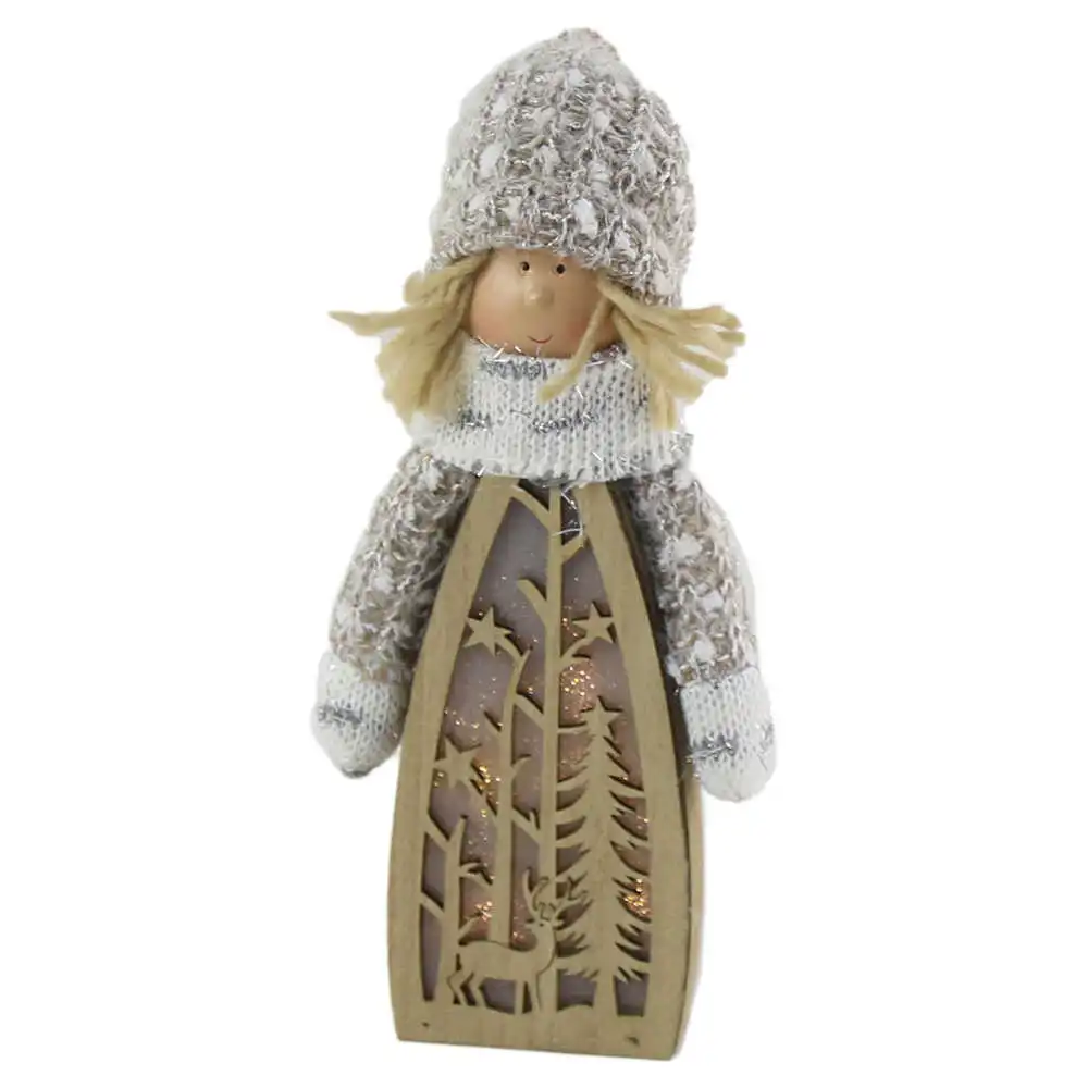 Figurina Craciun, Fetita lemn cu led 25 CM, Natur