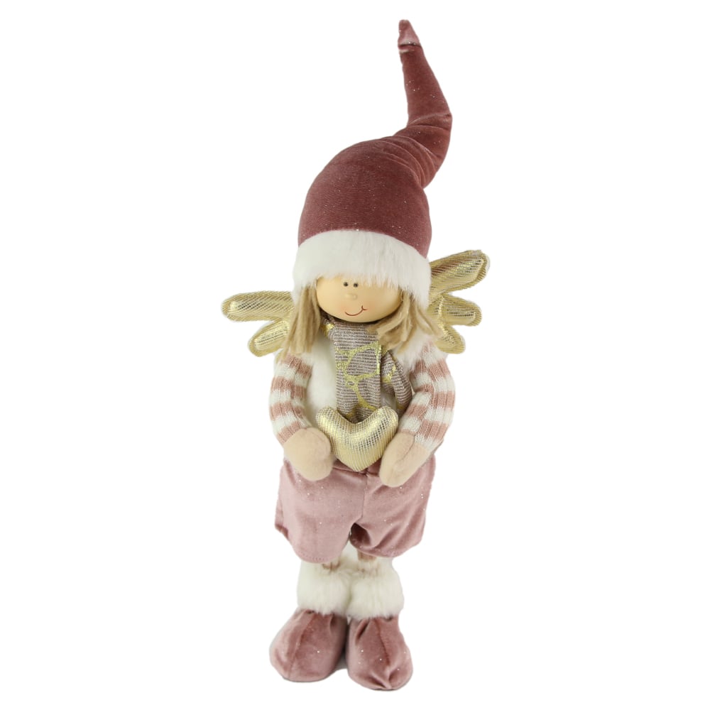 Figurina Craciun Ingeras din textil 50 CM, Pink gold