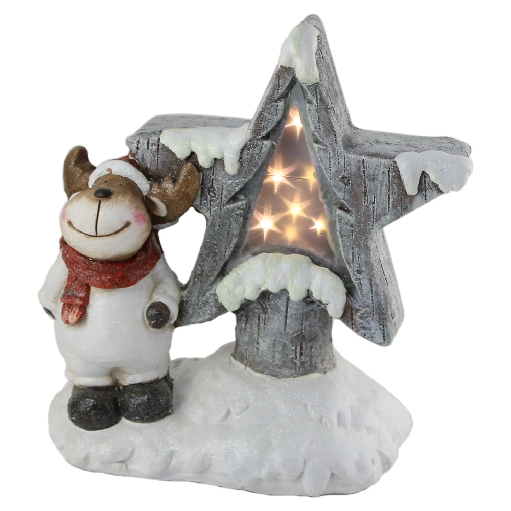 Figurina Craciun Ren cu stea si led 34 CM, ceramica
