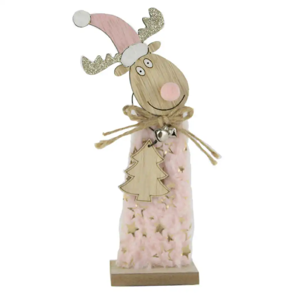 Figurina Craciun Ren din lemn cu brad 22 CM – Roz
