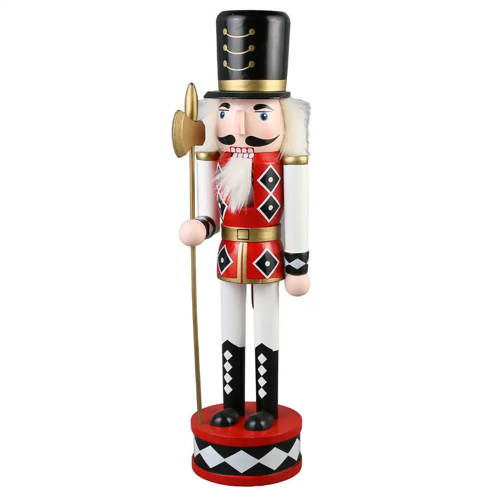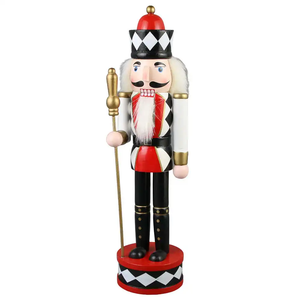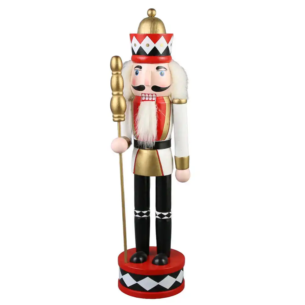 Figurina Craciun Spargator de nuci din lemn 38 CM, alb/rosu/negru
