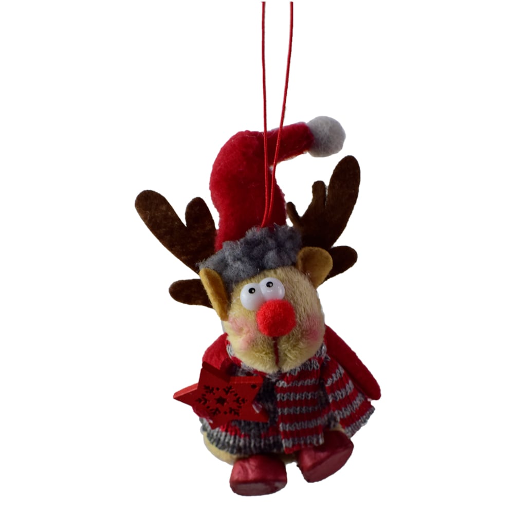 Figurina decorativa de agatat realizata din material plusat si textil pentru bradul de Craciun – Ren – Diverse modele