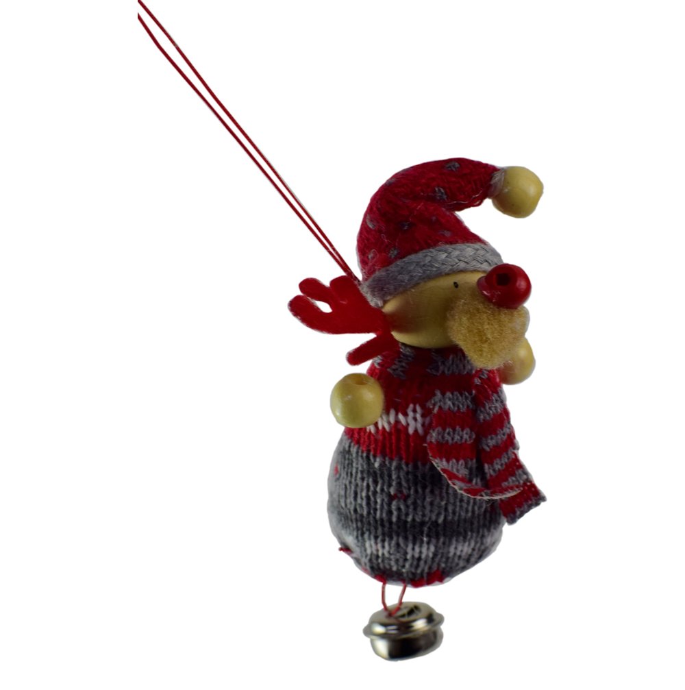 Figurina decorativa de agatat realizata din material textil si lemn pentru bradul de Craciun – Diverse modele cu clopotel