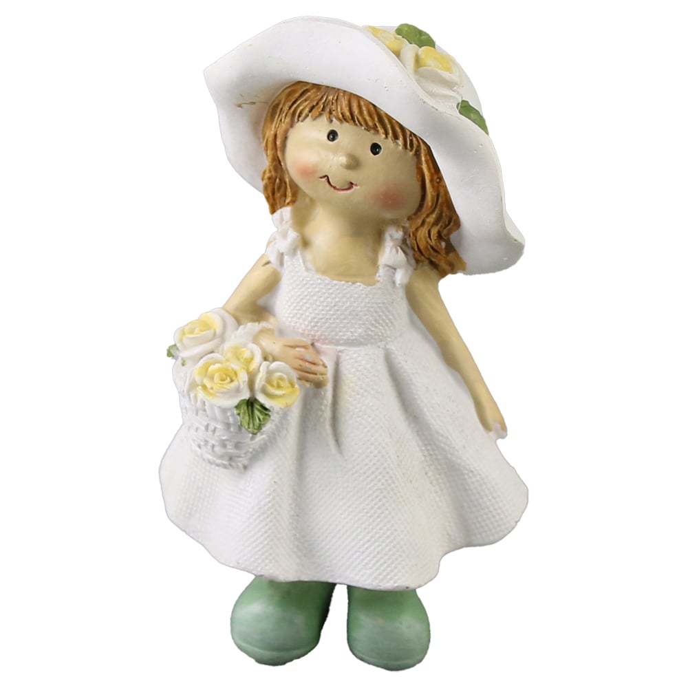 Figurina Fetita din rasina cu palarie si trandafiri, 14 cm