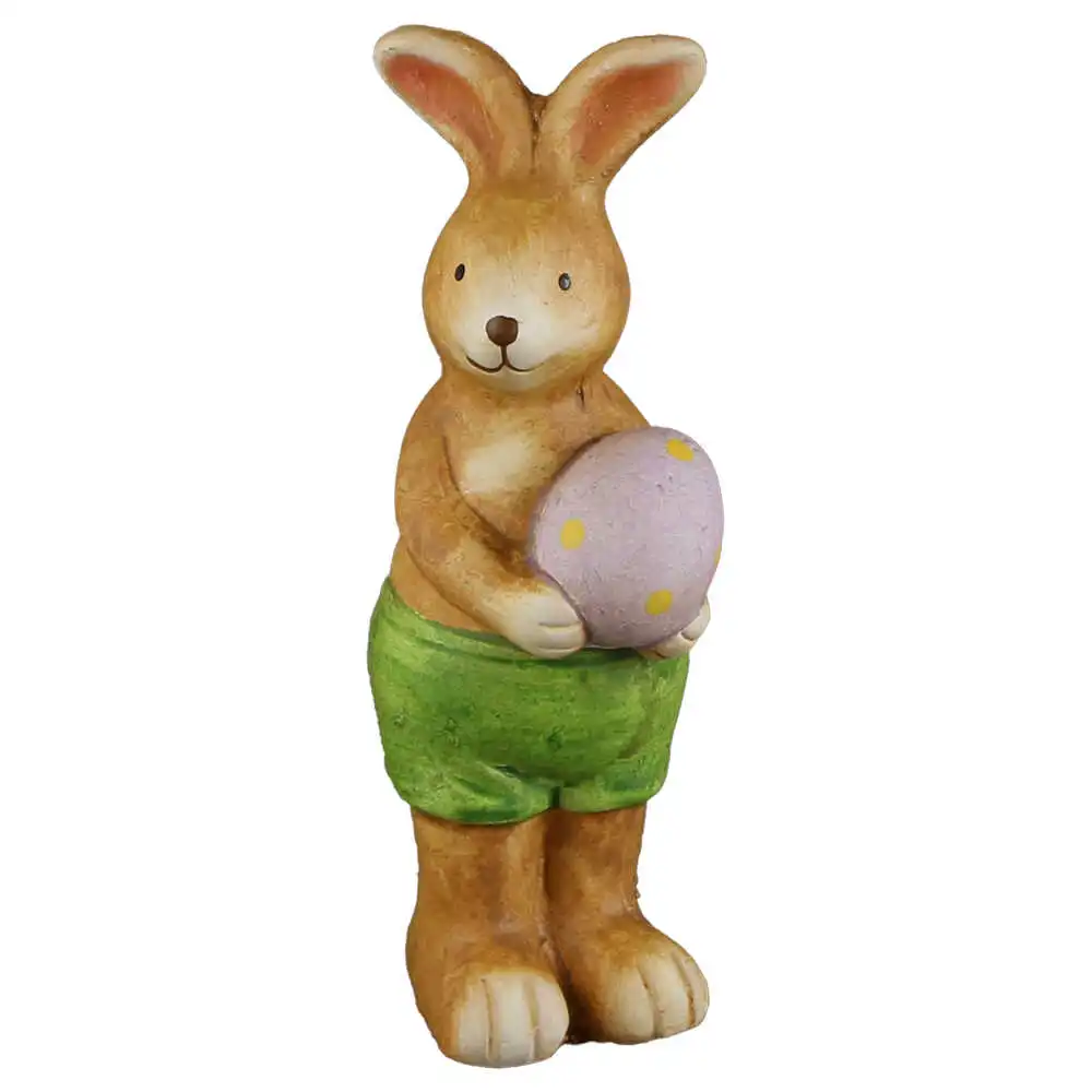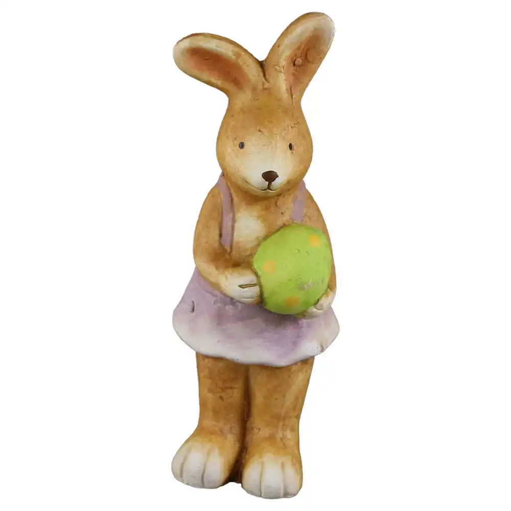 Figurina Iepuras cu ou, din ceramica 5×14 CM, verde/roz