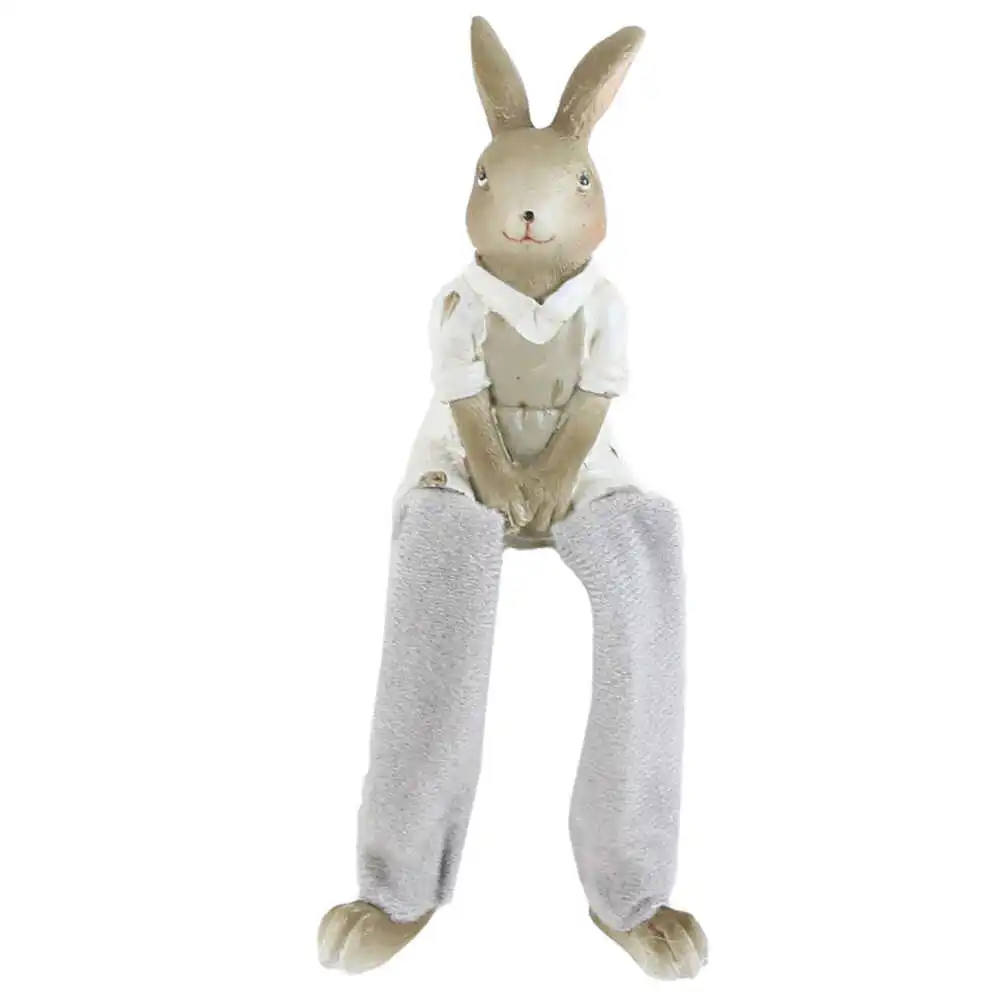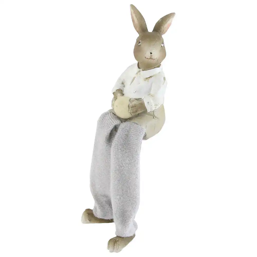 Figurina Iepuras din rasina 15 CM, cu picioare mobile, alb/gri