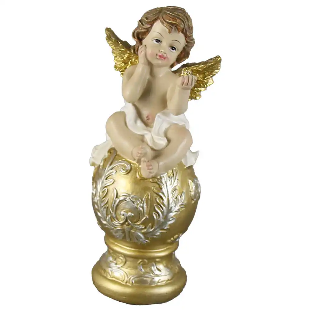 Figurina Inger pe glob, 22 CM, alb/auriu