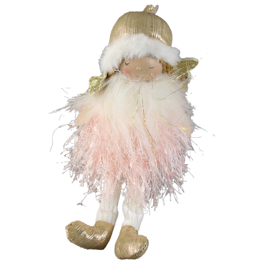 Figurina Ingeras din textil cu picioare mobile 21 CM, pink