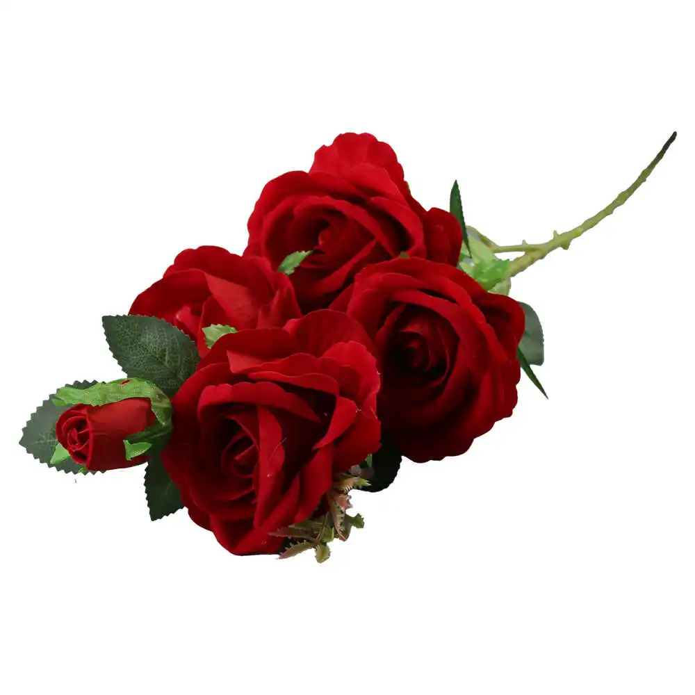 Fir de trandafir rosu artificial cu 5 capete, 85 cm