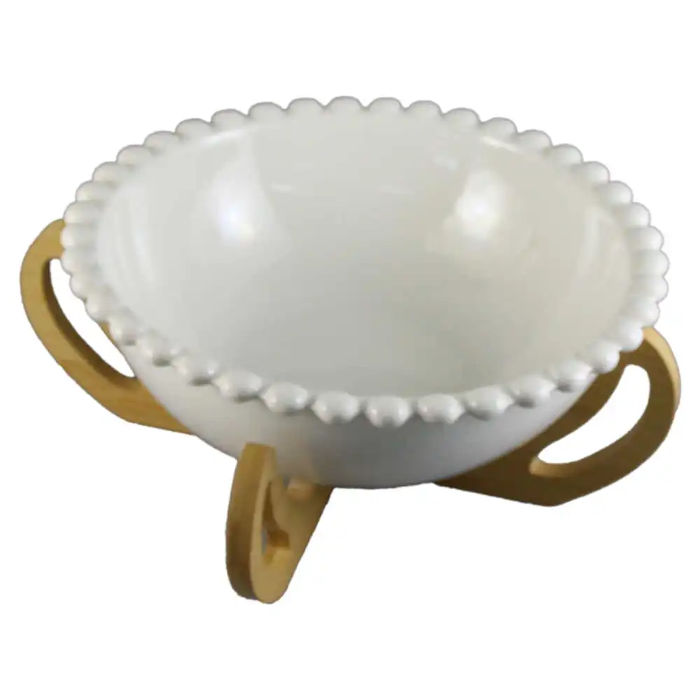 Fructiera din ceramica cu suport bambus 28 CM, White