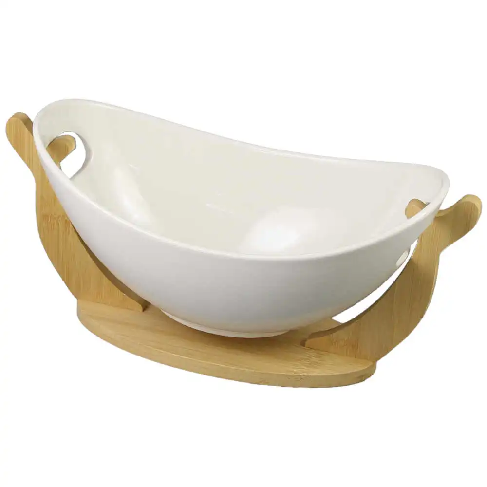 Fructiera din ceramica cu suport bambus 32×16 CM, White