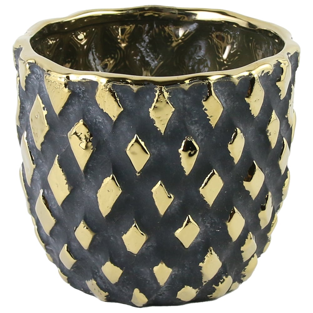 Ghiveci din ceramica Rombi aurii 14×12.5 CM