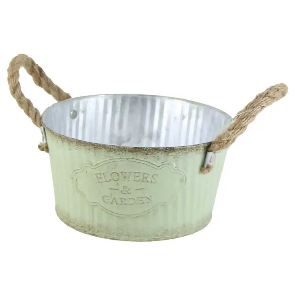 Ghiveci din metal cu manere din sfoara „Flowers & Garden” 18×9 CM
