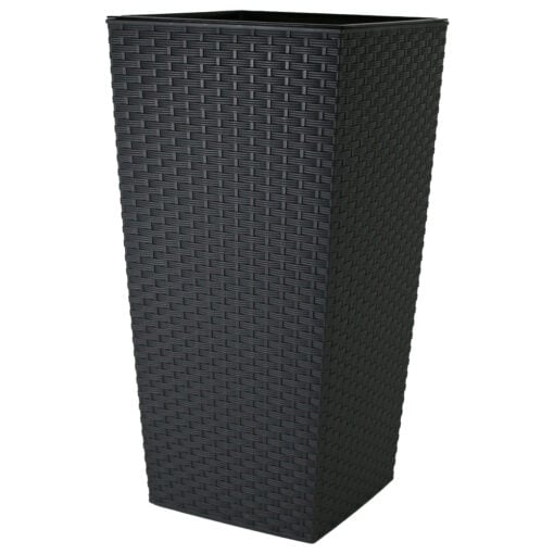 Ghiveci inalt din plastic Rattan gri inchis 29 x 29 x 30/57 cm