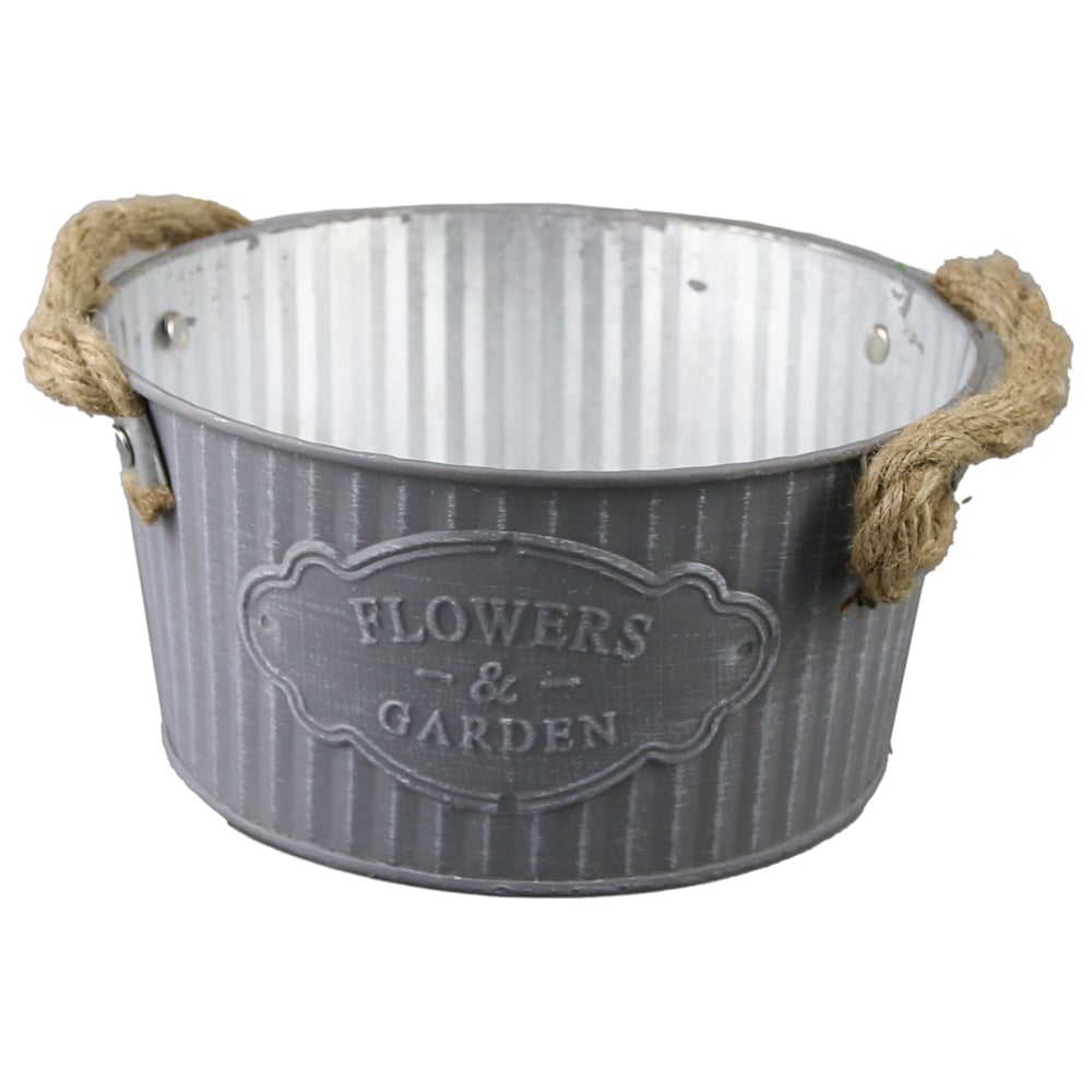 Ghiveci metalic cu manere din sfoara „Flowers & Garden” 18×9 cm, gri