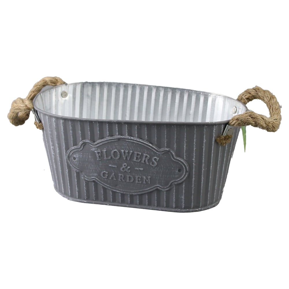 Ghiveci metalic cu manere din sfoara „Flowers & Garden” 24x14x11 CM, gri