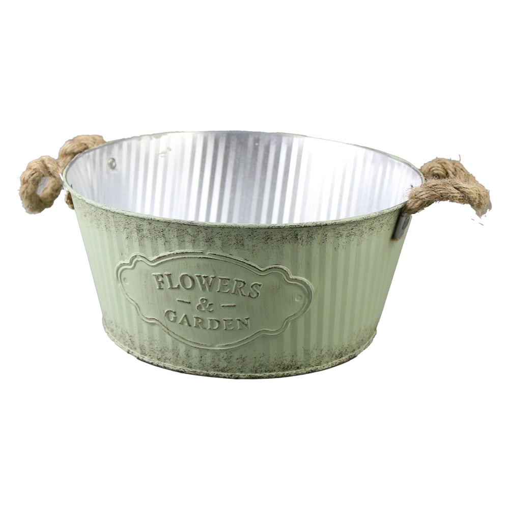 Ghiveci metalic cu manere din sfoara „Flowers & Garden” 25×11 cm, verde
