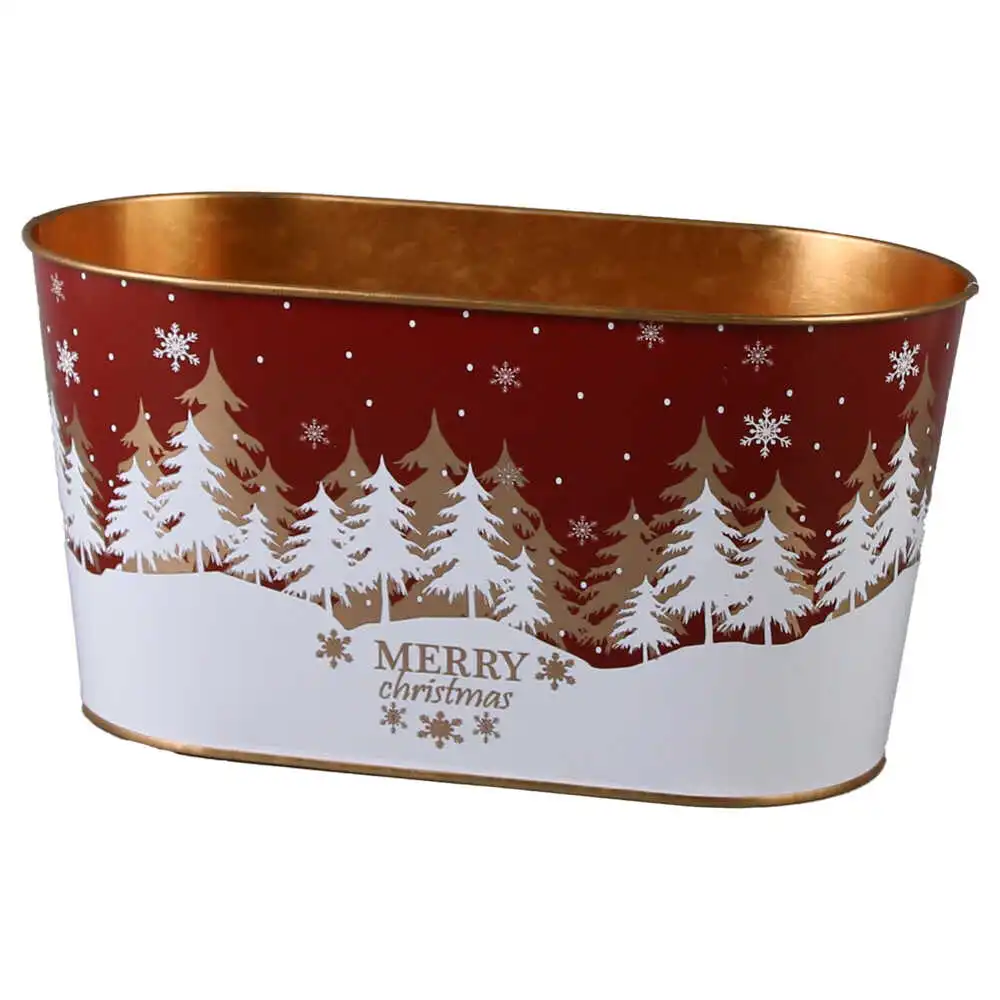 Ghiveci oval din metal 23×11 CM, Merry Christmas
