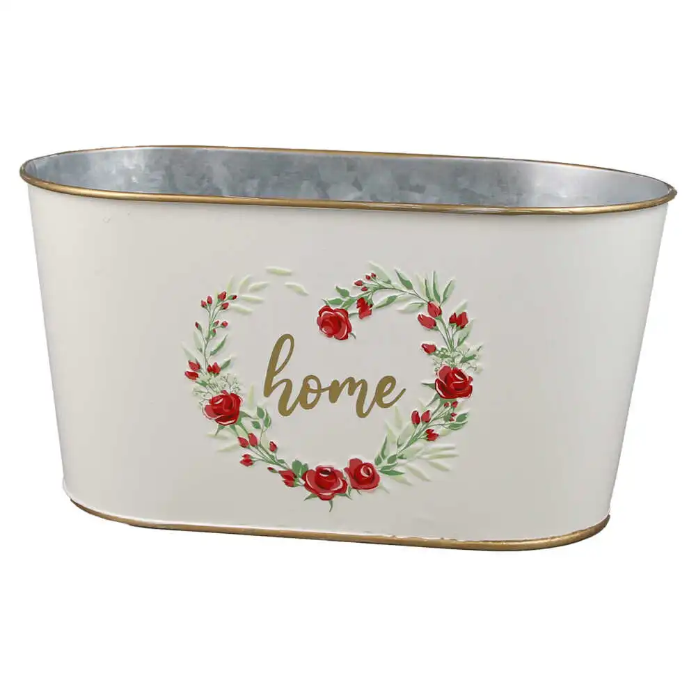 Ghiveci oval din metal 23×12 CM, „Home”, trandafiri