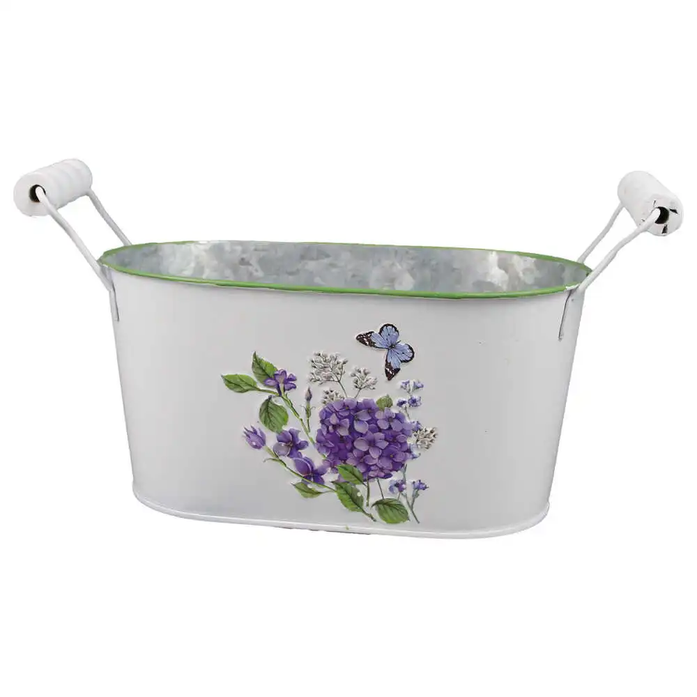 Ghiveci oval din metal, cu manere, 19×11.5 CM, Hortensie