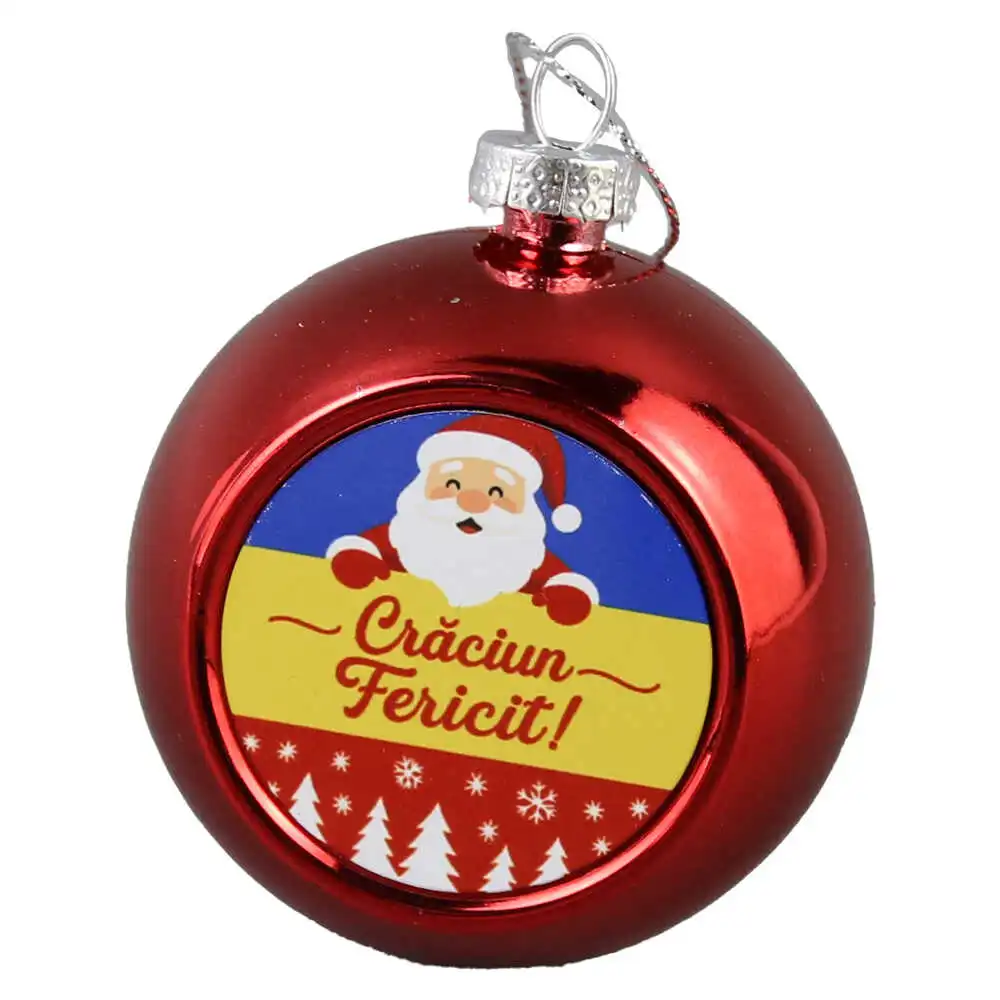 Glob pentru brad din plastic, „Craciun Fericit”, 6×5 CM, tricolor