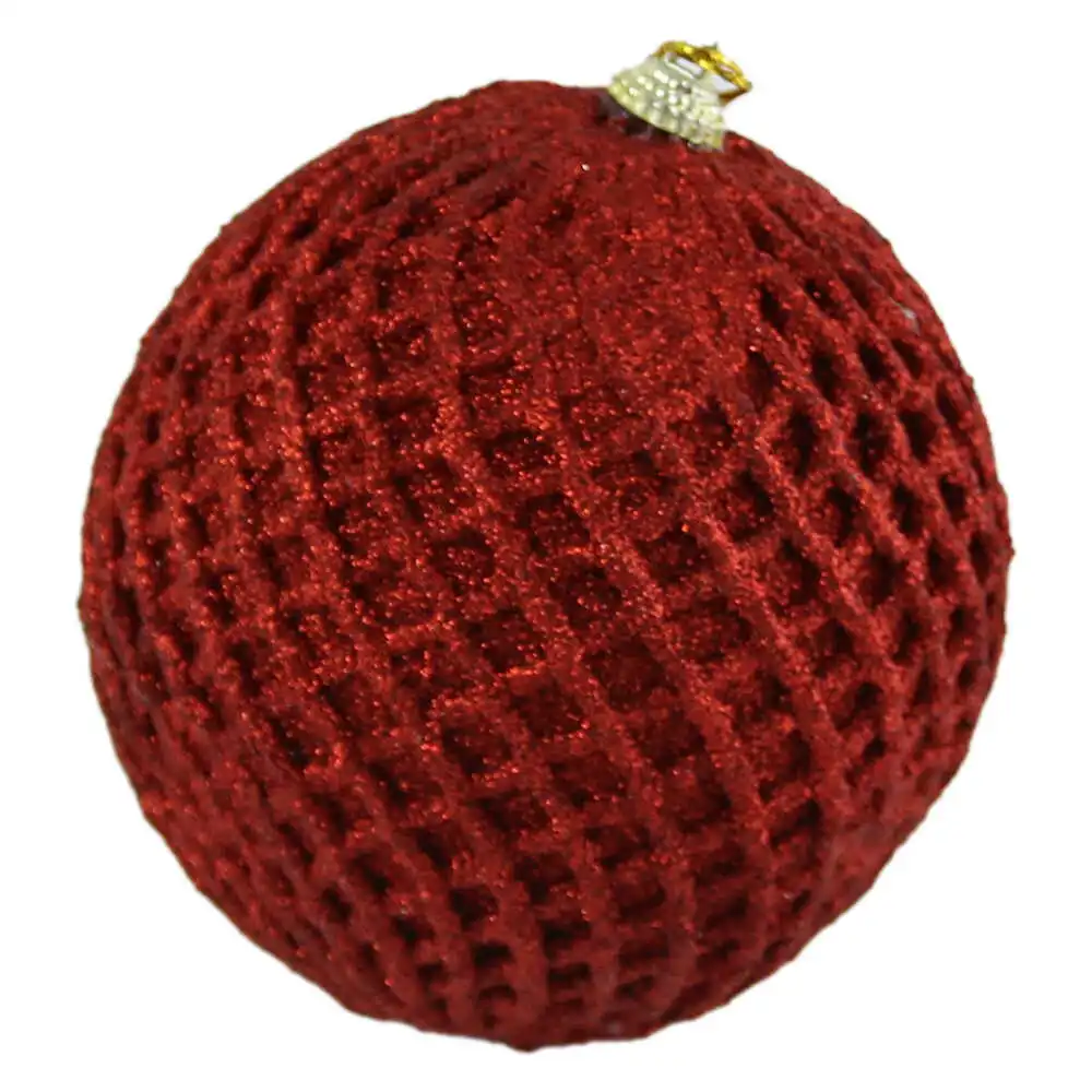 Glob pentru brad din plastic cu glitter 8 CM, Rosu