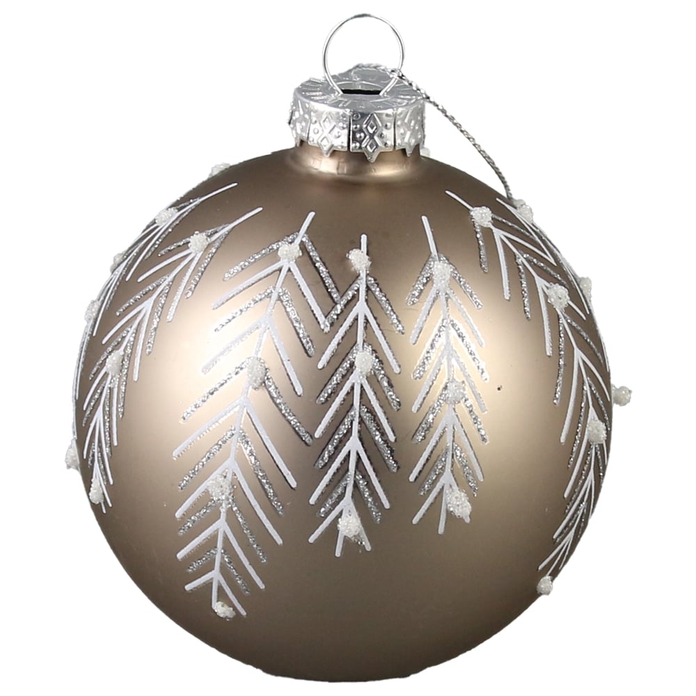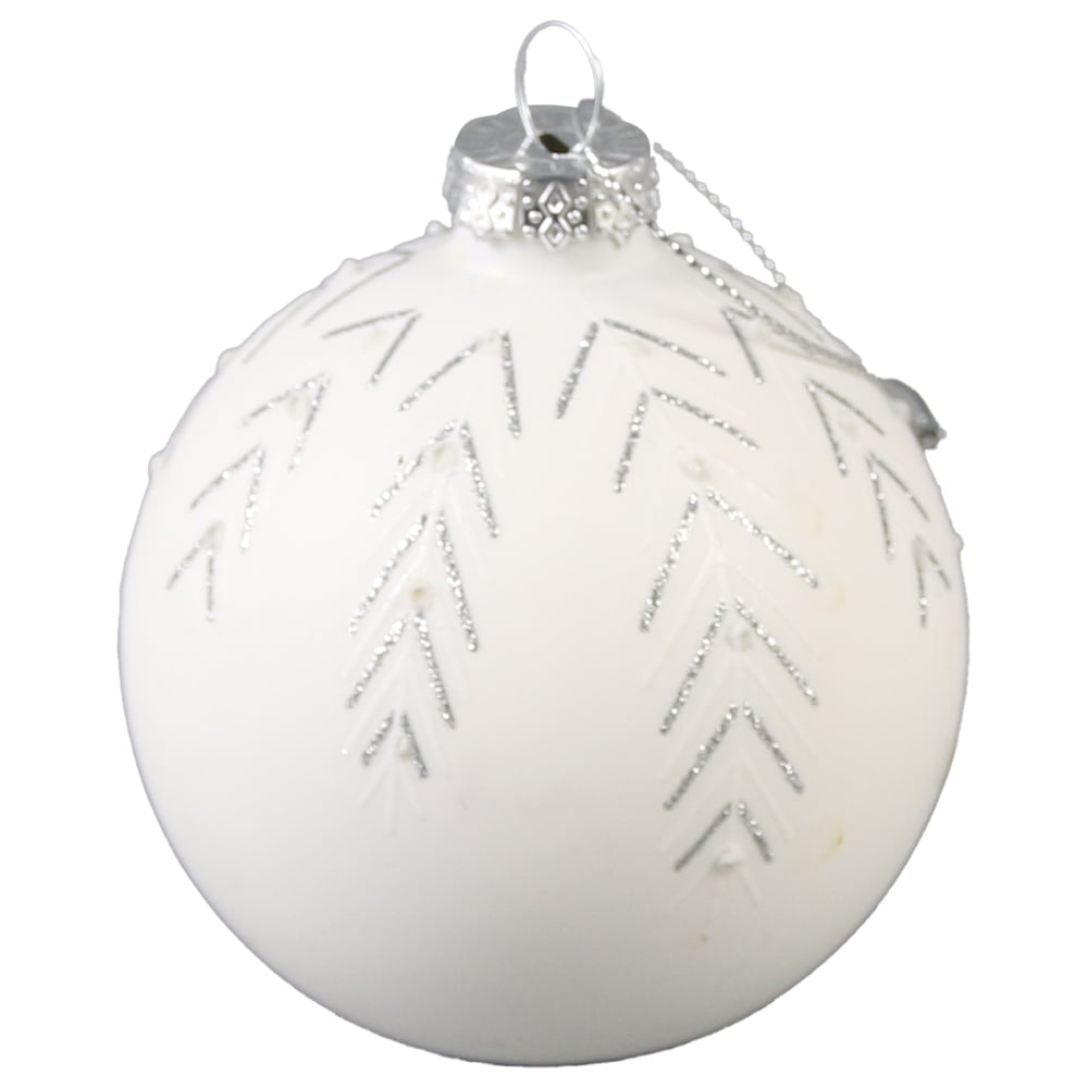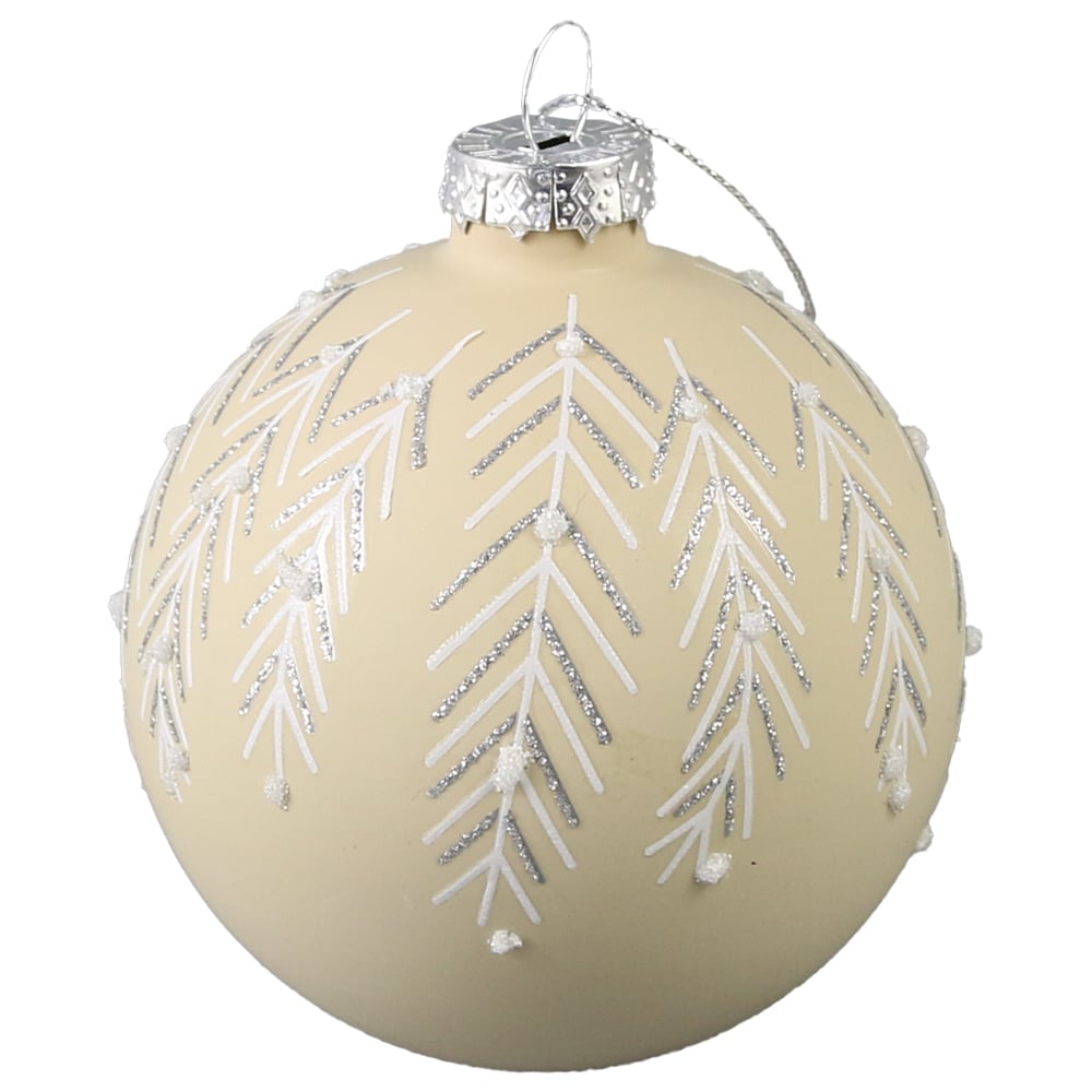Glob pentru brad din sticla, 8 CM, cu glitter, alb/auriu/crem