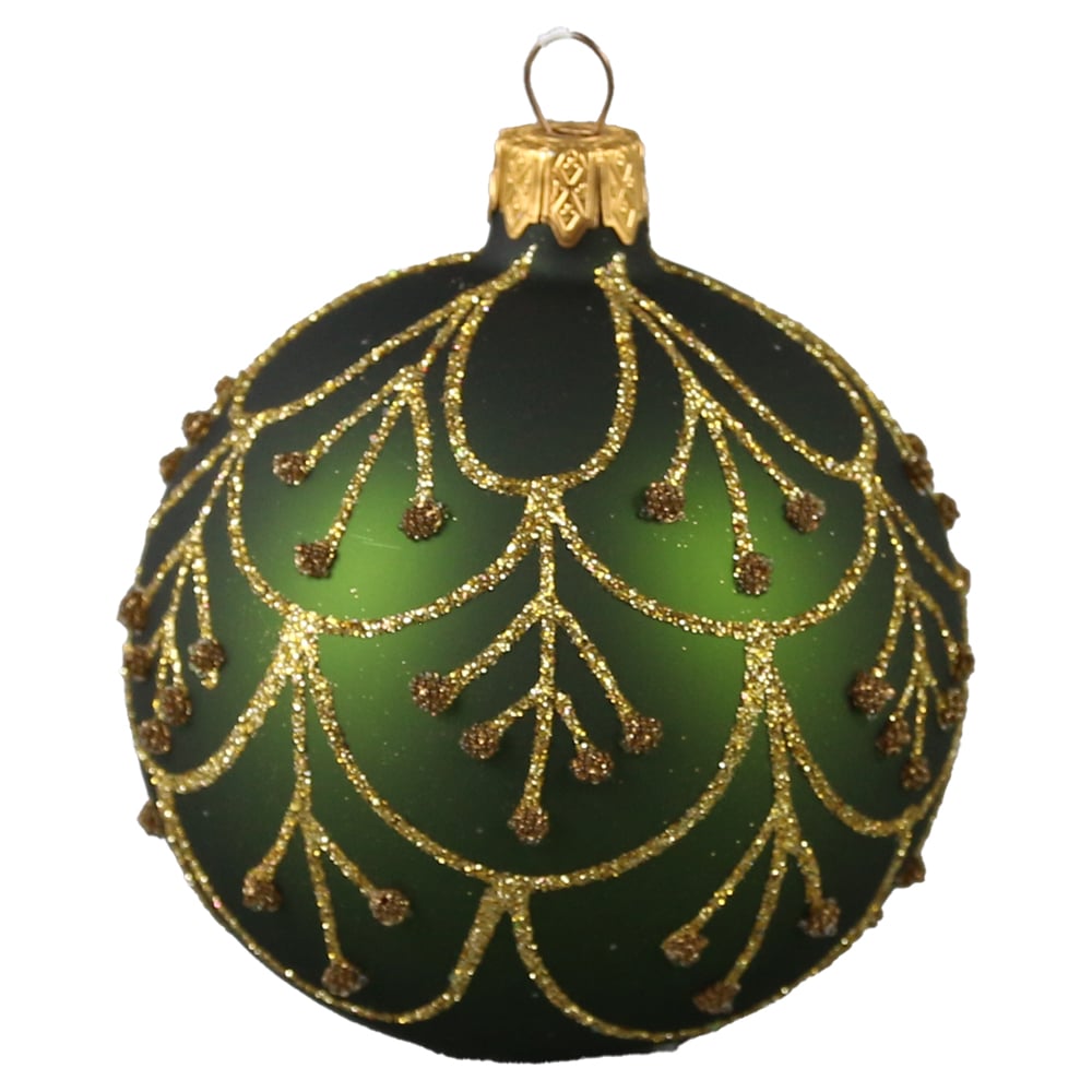Glob pentru brad din sticla, 8 CM, cu glitter, Verde/Rosu