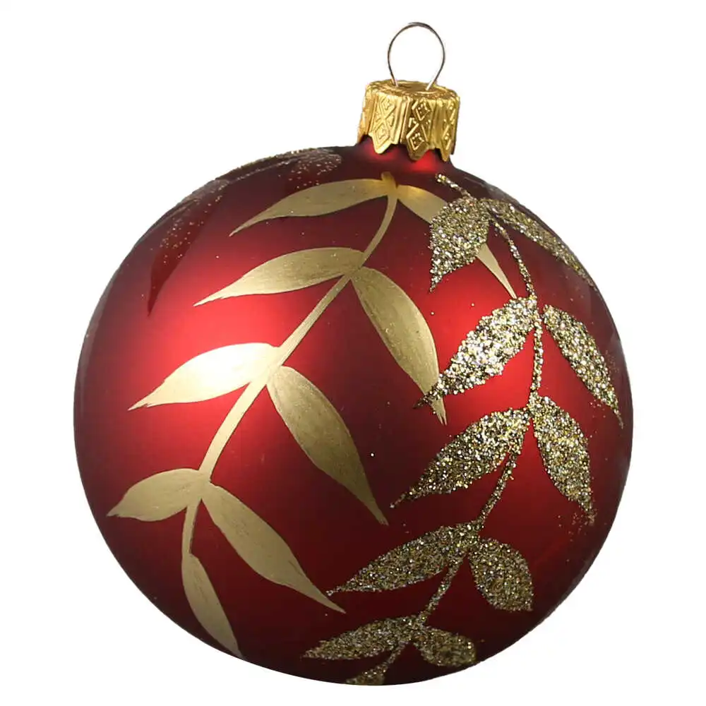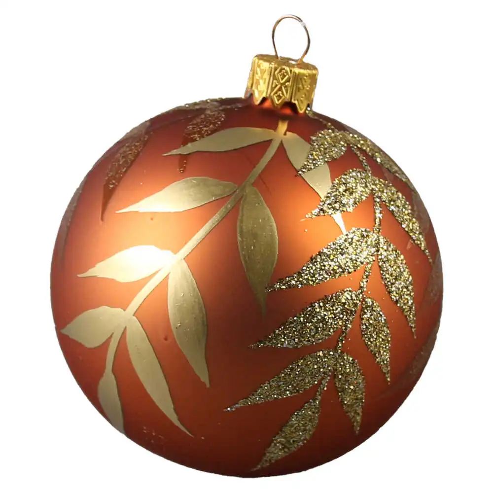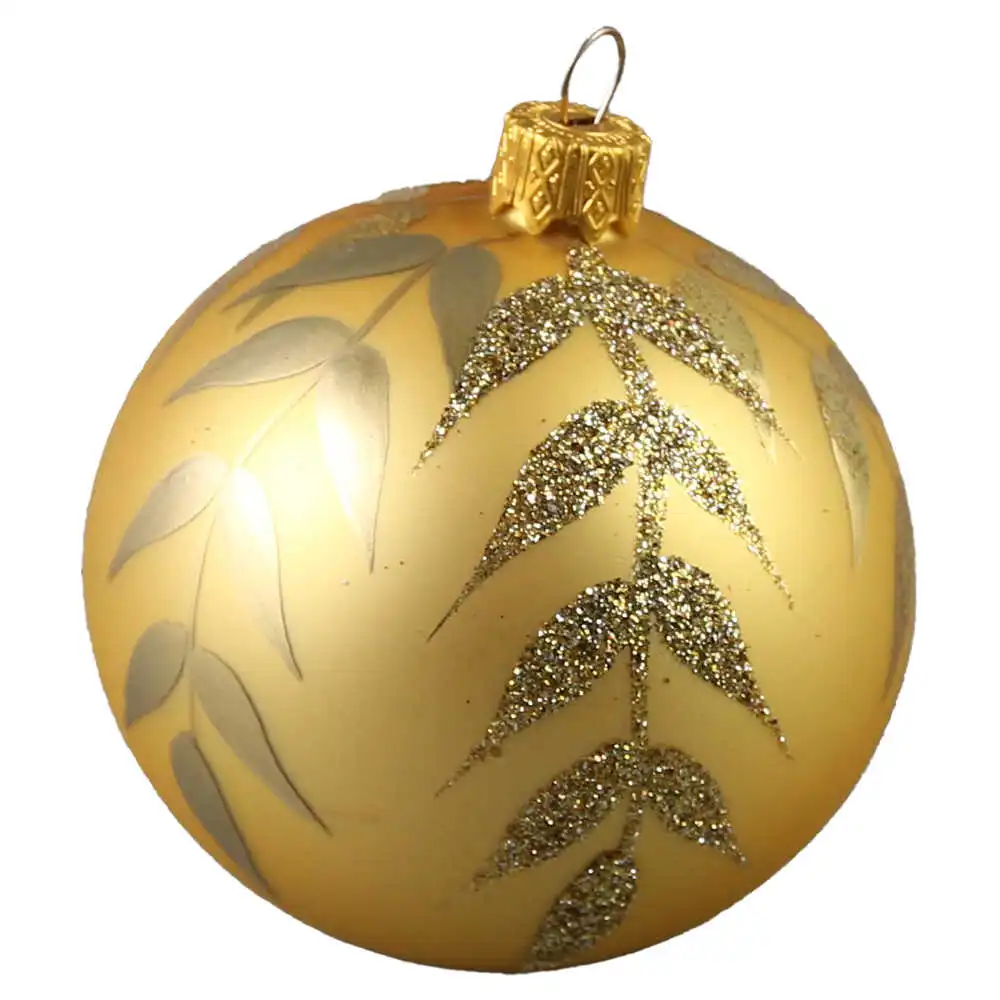 Glob pentru brad, din sticla 8 CM, Frunze cu glitter