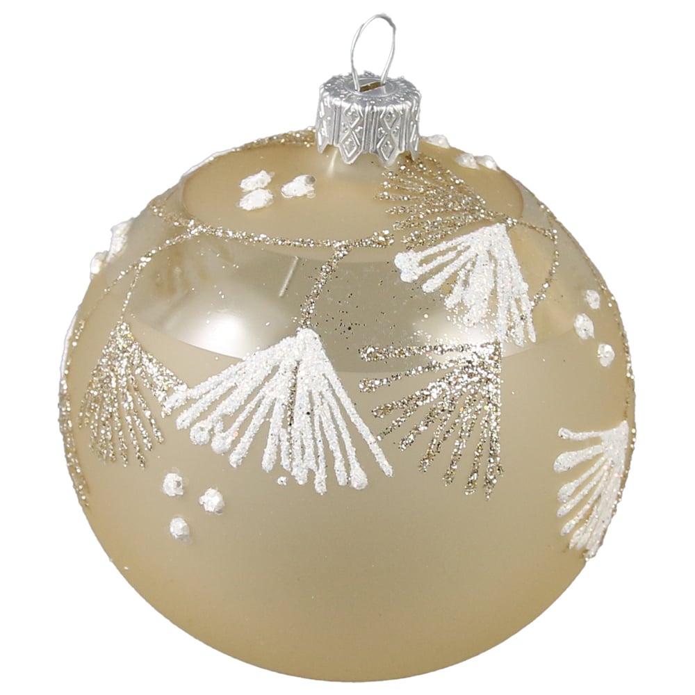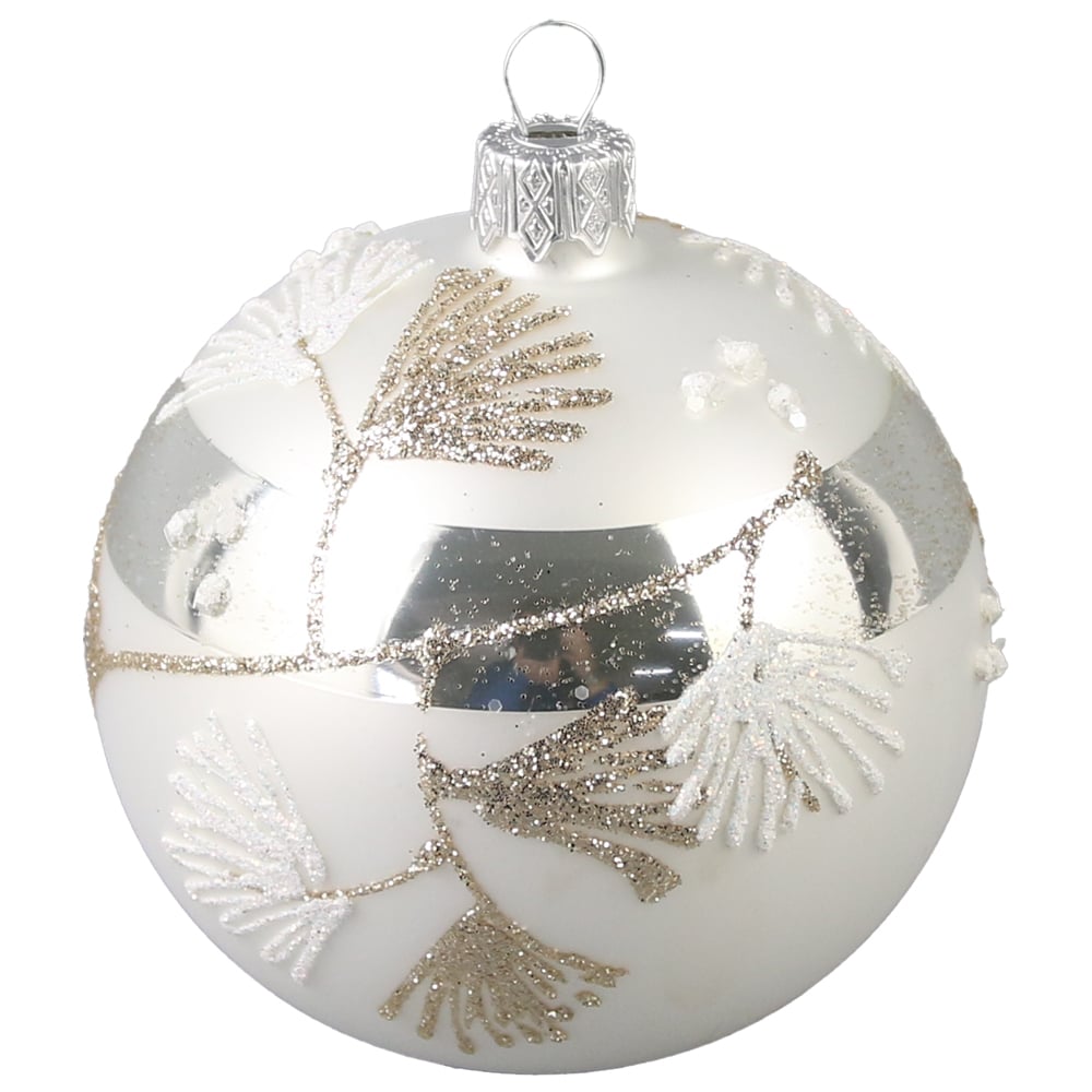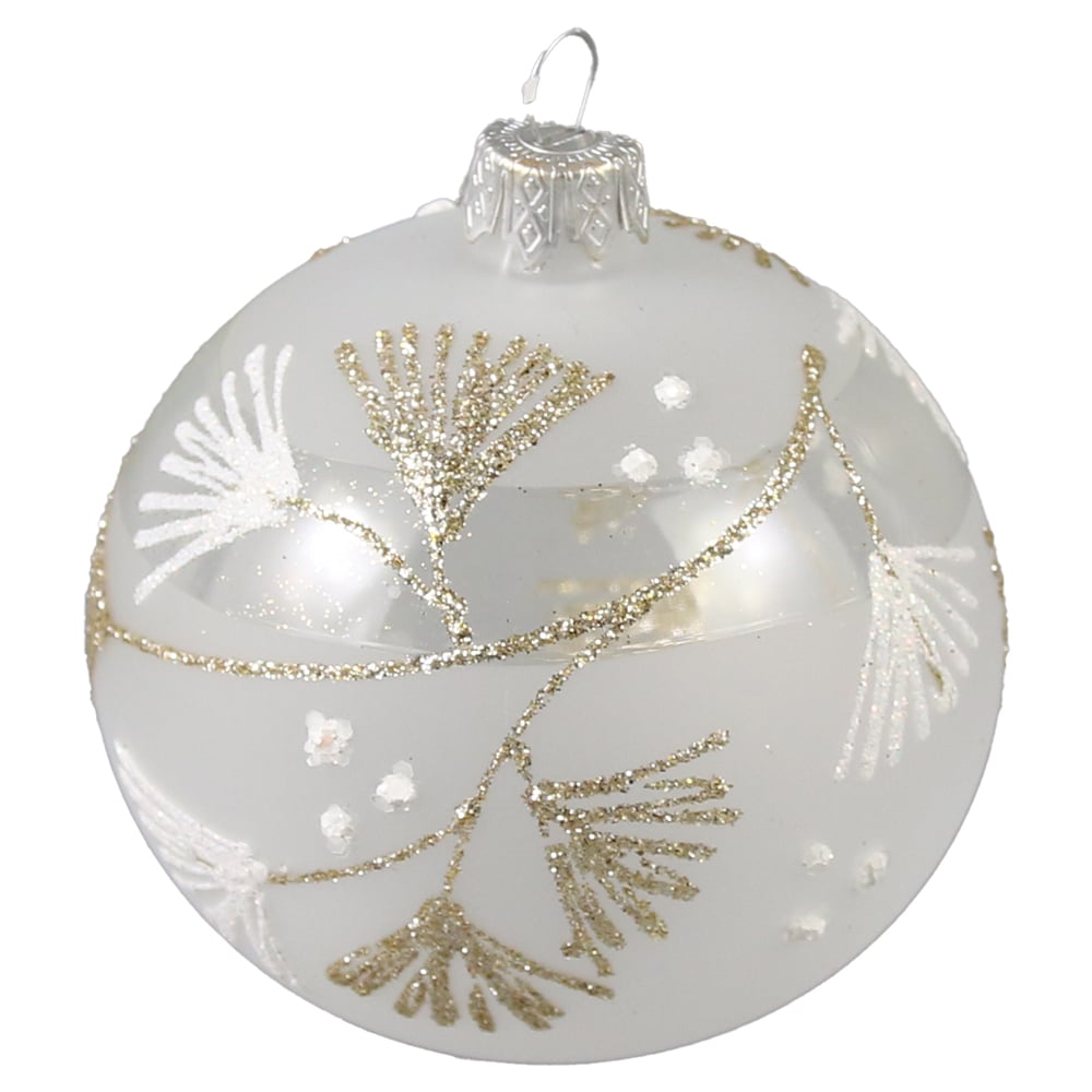 Glob pentru brad din sticla, 8 CM, Frunze glitter, Handmade