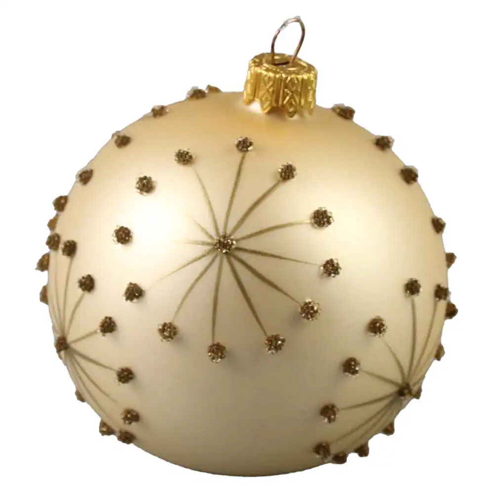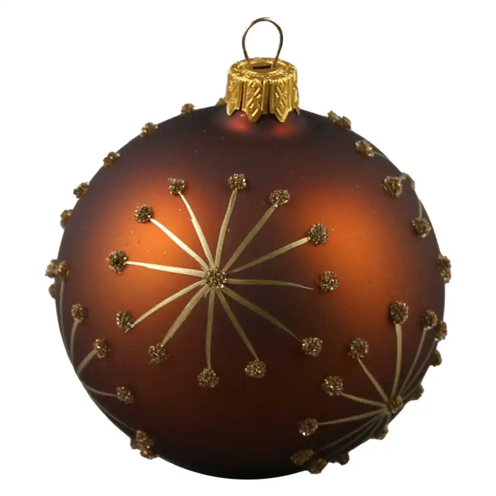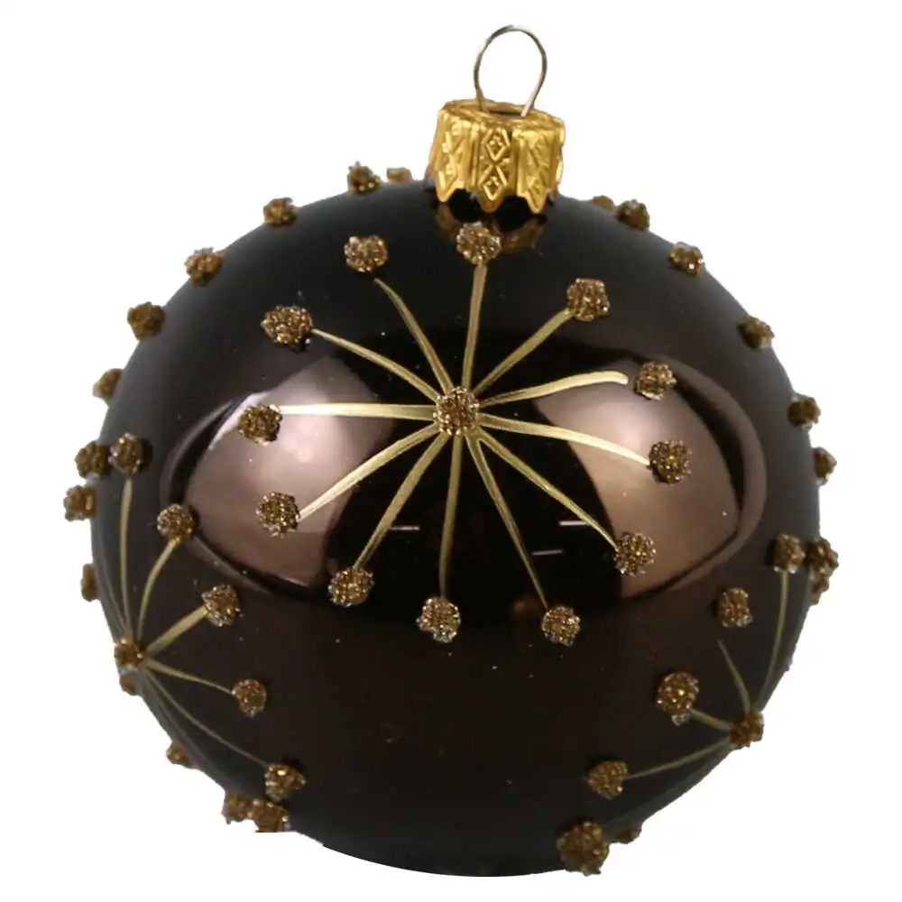 Glob pentru brad, din sticla cu 8 CM, Maro cu glitter auriu