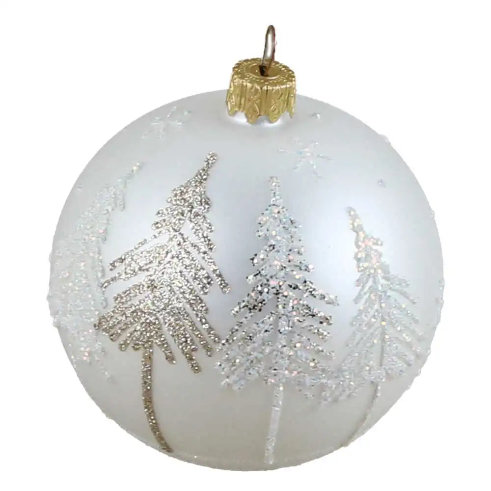 Glob pentru brad din sticla cu glitter 8 CM, Brad/copac