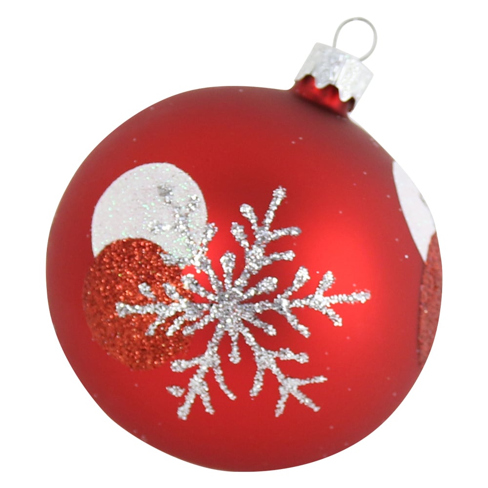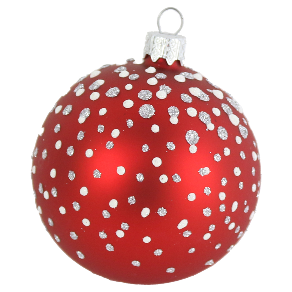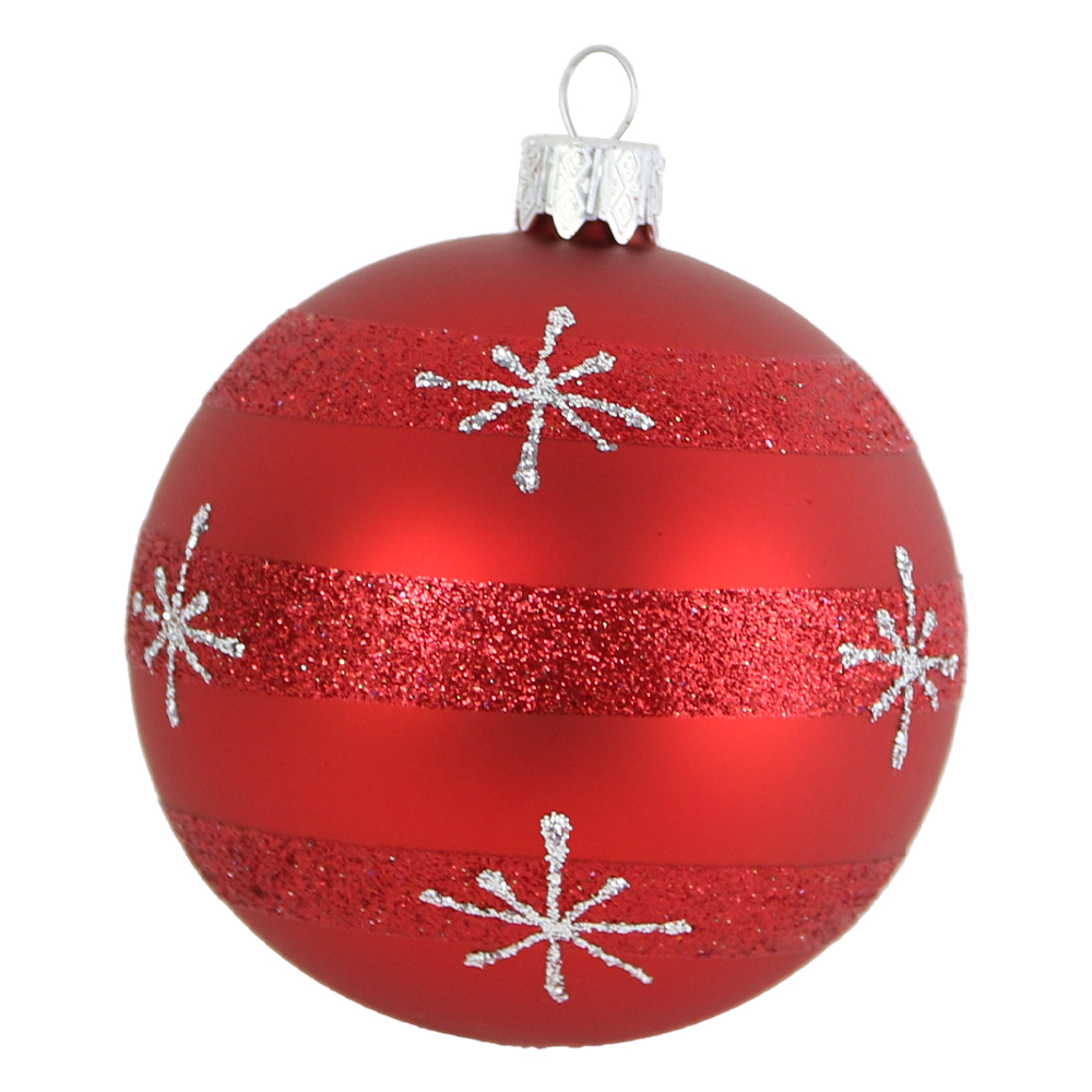 Glob pentru brad din sticla cu glitter 8 CM, Rosu
