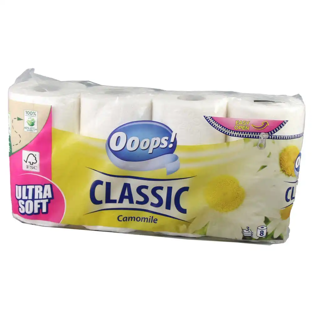 Hartie igienica Classic 3 straturi, 8 role, Camomile
